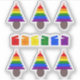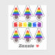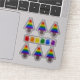 This awesome shaped sticker sheet features a rainbow Christmas Tree with 2 small pink female symbols sitting on top of the tree. Each layer of the tree is a different colour of the rainbow. The tree sits in a brown pot and is surrounded by presents. Each present is also a colour of the rainbow, with a different rainbow coloured ribbon and bow. A lovely design for lesbian couples this Christmas.
