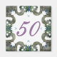 A arabesque design in green, blue and purple in the style of spanish azulejo tiles.