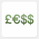 less money Symbols Pound, Euro Us Dollar Square Sticker