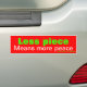 Bumper stickers with a message Less piece means more peace-slogan written by ralph w staples for words of wisden http://zazzle.com/writepeople