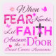 Inspirational breast cancer quote of “When FEAR Knocks, Let FAITH Answer the Door” for breast cancer fighters who have faith in God.