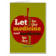 "Let Food be thy Medicine, and Medicine be thy Food" is a famous historical quote from Hippocrates (460 BC – c. 370 BC), who was an ancient Greek physician. Presented on this product using typography with various shades of green, white and yellow. The text is set on top of a image of one of natures super foods, a juicy red apple.