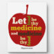 "Let Food be thy Medicine, and Medicine be thy Food" is a famous historical quote from Hippocrates (460 BC – c. 370 BC), who was an ancient Greek physician. Presented on this product using typography with various shades of green, white and yellow. The text is set on top of a image of one of natures super foods, a juicy red apple.