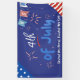 Celebrate Independence Day with this minimalist yet festive party banner. The deep blue background sets the stage for the bold "Happy 4th of July" text in light blue and white. Minimalist illustrations of firecrackers and starbursts in red, white, and blue add a touch of fireworks flair. Hanging buntings with the letters "U", "S", and "A," along with triangular sections featuring stars and stripes, pay homage to the American flag. This design strikes the perfect balance between simplicity and patriotism, making it an ideal choice for your 4th of July celebration decor.