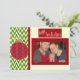 Pretty Christmas holiday photo card with our Let it Be Christmas design, easy to customise with your text and photo, the perfect holiday greeting to send to friends and family members. This red, cream, and green chevron stripe card features a Happy Holidays banner and a red tree ball ornament.