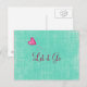 Let it Go Quote postcard with distressed style green background and pink heart balloon. Inspirational and motivational saying for anyone that needs to just let it go.