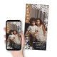 Add one vertical photo to this whimsical snowflake design with snow overlaying your photo.