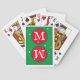 It’s beginning to snow! ADD YOUR WHITE MONOGRAM , on 2 RED DISCS t set over BRIGHT GREEN FIELD, with FOREST GREEN FRAME next to WHITE border, on these Bicycle playing cards.
