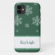 Whimsical and fun Let it Snow Case-mate Barely There iPhone 5 Case in dark green featuring a cascade of hand drawn snowflakes. This fun iPhone case will keep your phone protected with holiday or winter flair. Easy to customise, simply add the personalised text of your choosing.