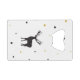 Our Let It Snow Christmas Art Cartoon Reindeer Image Design features hand-drawn black and gold snow speckles surrounding a black deer silhouette. Enjoy the season!