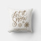 White with gold Let it Snow Christmas personalised throw pillow. Perfect for accenting your home holiday decor..