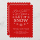 Pretty red and white snowflake design with the words "let it snow, let it snow, let it snow." Perfect for an invitation to a Christmas cocktail or Holiday Party. Easy to customise with your own personalised texts.