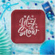 Brighten up your Christmas table with this cheerful paper plate design that features white 'Let it Snow' typography, sprinkled with snowflakes on a solid red background texture. Search ID951 to see other products with this design.