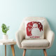 Pillow featuring jolly snowman in red and white