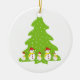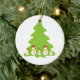 Let it snow custom Christmas ornament featuring a row of adorable snowmen with red hat, yellow scarf, button eyes and sticks on a cute Christmas tree with snowflakes.