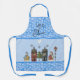 This pretty apron has a wintry scene with two houses, a tree, birdhouse and two adorable snowmen dressed for warmth. There is a heart above and snowflakes. The top and bottom of the apron are pretty white snowflakes against a blue background and topography says "Let it Snow". Such a sweet apron, perfect for entertaining or just cooking or baking for the family.