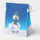 Package your gifts in style with this nice favour box. It features a lovely snowman standing in the snow, wearing a blue wool knit cap and a blue wool scarf and holding a white board where you can read "Let It Snow". Makes the ideal finishing touch for your gifts.