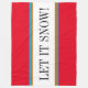 This bright seasonal design features blue and brown pinstripes highlighting "LET IT SNOW!" text inside a horizontal centre white stripe. Wide bright red outer stripes complete the festive composition. All colours and text can be personalised.