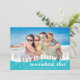 Share one of your favourite vacation pictures with this funny photo Christmas card featuring a modern overlay with the wording "Let it snow somewhere else" decorated with white pines and snowflakes.
