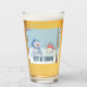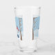 This wintery scene has two adorable snowmen. Both snowmen are dressed in their winter hats and scarfs. On the back of the glass, there is an area for additional text.