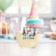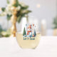 This adorable design has features a snowman among the evergreen trees. The text reads “Let It Snow”.