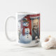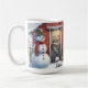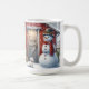 Let it snow! From the first snowfall to the last you will use and enjoy this charming snowy mug. White ceramic handle and interior with twin snowmen and a little Westie friend. A shed serves as a backdrop. This mug holds a nice 15 oz of your favourite hot drink and ceramic tends to keep it hot longer than glass or plastic. Dishwasher and microwave safe.