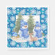 A Classic Winter Theme Snow Paper Napkin With Playful Snowman and Snowflakes.