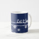 Let it Snow, Snowflake custom coffee mug. Fun holiday for any type of winter celebration. Navy blue with white snowflakes.