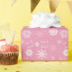 Snowflakes in shades of pink and white dance over this festive wrapping paper. Between the flakes are the words, "Let It Snow!". Also available in other colours.