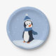 A penguin wearing a blue hat and scarf stands in the snow and watches the snowflakes fall. This design is available on multiple products including shirts, mugs, pillows, and more! It can be customised or personalised by adding your own text or images!