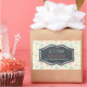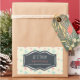 A festive sticker which says: let it Snow, Seasons Greetings, with your custom name. The background is a pattern with pink and blue snowflakes on a cream coloured background. The centre has a whimsical hand drawn banner, inside you can personalise the text.