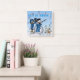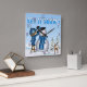 This festive Let It Snow Snowman Square Wall Clock features a snow scene background with falling snow, snow covered pine trees, a child on a stool putting the finishing touches on his snowman. The child is dressed in blue and the snowman has a blue scarf and black top hat. There is a reindeer looking on by the pine trees. Snow covered blue text is Let It Snow! Perfect for any room in your home or office. Clock numbers can be deleted if you prefer your clock without them. Also makes a wonderful Christmas gift! Matching items include; pillows, dinner & cocktail napkins, place mats, kitchen towels, tiles/trivets, coaster set, mugs, pitcher, teapot, candy jars, lamps and more are also available in our shop.