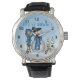 This festive Let It Snow Snowman Watch features a snow scene background with falling snow, snow covered pine trees, a child on a stool putting the finishing touches on his snowman. The child is dressed in blue and the snowman has a blue scarf and black top hat. There is a reindeer looking on by the pine trees. Snow covered blue text is Let It Snow! The watch numbers can be deleted, if you prefer your watch without them. Perfect for wearing this Holiday season or all winter long! Also makes a great Christmas gift. Choose the style and colour of your watch! Styles for men, women and children. We have matching necklaces, scarves and neckties. Delete the watch numbers; Click Customise - Click on the "X" next to the clock numbers.
