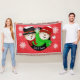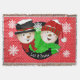Let it Snow Snowmen holiday tree skirt features a beautiful design featuring a red background with white polka dots, a black ring, green centre with white polka dots, snowflakes of white, a cute snowman couple with red and green top hat, winter hat, and scarves, and white text that reads Let it Snow! You can easily change the text to a name if you prefer!