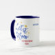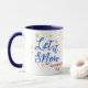 "Let it Snow Somewhere Else" declares this cute winter themed coffee mug! The text is printed on both sides, with gold snowflakes falling all around. At the centre is your name or other text, as you wish. Text colour is blue and red. Perfect for the Holiday Season, but appropriate all winter long!