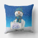 Add a decorative touch to your household decor with this cute and whimsical throw pillow that features a lovely snowman standing in the snow, wearing a blue wool knit cap and a blue wool scarf and holding a white board where you can read "Let It Snow", this pillow will add cheery holiday wonder to your decor