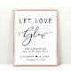 Chic wedding reception dance floor sign featuring "Let Love Glow" in a mix of simple modern typography and a stylish script, your first names joined together with a heart and your reception date. You can easily personalise your glow stick instructions.