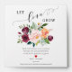 Please note: "Let Love Grow" wording artwork and watercolor burgundy blush pink orange floral arrangement both cannot be edited, changed, moved, or deleted.