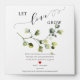 Please note: "Let Love Grow" wording artwork and the watercolor greenery garden leaves arrangement both cannot be edited, changed, moved, or deleted.