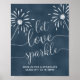 Let love sparkle wedding sign poster with sparklers on a blue chalkboard background.