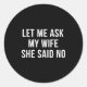 Let Me Ask My Wife She Said No Funny Husband Classic Round Sticker