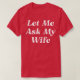 Let Me Ask My Wife .Casual, Funny, Family, Sports, Music, Vintage, Holiday, Graphic, Streetwear, Boho, Classic, Outdoor, Urban, Preppy, Coastal, Festival, Pride, Souvenir, Party, Gifts, Travel, Seasonal, Christmas, Halloween, 4th of July, Thanksgiving, Father's Day, Mother's Day, Graduation, Anniversary