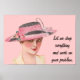 This poster features a vintage image of a woman in an elegant pink hat, on a customisable pink background. The text, "Let me drop everything and work on your problem", can be customised as well.