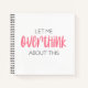 Spiral lined notebook with grey and pink font and white background. "Let me overthink about this". Great for school, home or office.