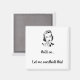 This funny magnet features a retro illustration of a woman deep in thought and the words, "Hold on...Let me overthink this!"