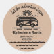 "let the adventure begin" vintage script with paired illustration of a car on the road and all information in complementary font ready for easy customisation.