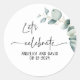 Let’s Celebrate name date eucalyptus modern Classic Round Sticker