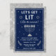 Light up your Hanukkah celebration with this bold and festive "Let's Get Lit" invitation. Featuring a faux glitter silver menorah, this design pairs traditional symbols with a cheeky, modern flair. The deep navy blue background and silver accents create a stylish contract, while Stars of David and laurel branches add elegant detail. Perfect for parties filled with laughter, latkes and light, this invitation sets the tone for a joyful celebration.