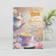 Celebrate in elegant style with this tea party birthday invitation, featuring a dreamy pastel illustration of a floral teacup and teapot pouring shimmering golden tea, surrounded by soft pink roses and magical sparkling details. This romantic and whimsical design creates the perfect mood for a tea-themed birthday celebration.