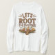 Celebrate kindness and community with this rustic t-shirt design featuring the text "LET'S ROOT FOR EACH OTHER" in a charming hand-drawn font. Illustrated carrots, onions, and potatoes add a playful touch, set against a beige wooden board background. Perfect for spreading positivity and wholesome vibes in everyday style!